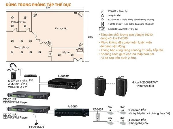 Hệ thống âm thanh dành cho phòng Gym.